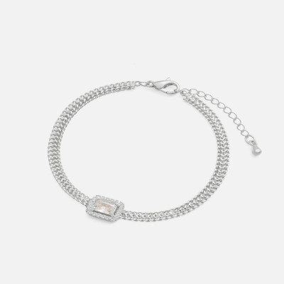اسوارة يد نسائية بلون فضي، هي قطعة إكسسوارات نسائية راقية ومميزة بتصميمها الجذاب ولونها الفضي الأنيق وتتميز بحلية مرصعة في المنتصف بحجر زركون لامع يضفي لمسة من الأناقة والتألق إلى طلتك.
